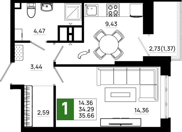Общая площадь квартиры — 35.66 кв.м. Тип дома — монолит-кирпич. Компания-застройщик — ССК.