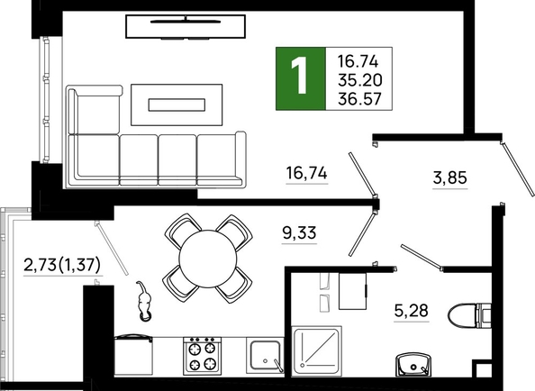 Общая площадь квартиры — 36.57 кв.м. Тип дома — монолит-кирпич. Компания-застройщик — ССК.