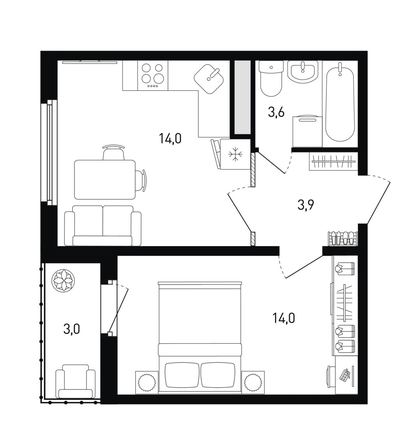 Общая площадь квартиры — 37 кв.м. Тип дома — панельный.