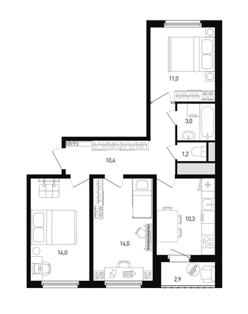 Продается 3-комнатная квартира  в новостройке 5 элемент Аске, лит 5-12 стр.1, сек.1,2  по адресу  Ростовская область, Ростов-на-Дону, Советский район.