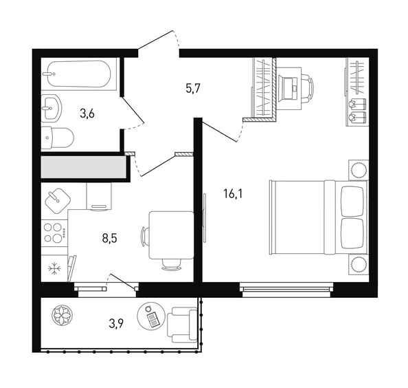 Общая площадь квартиры — 35.1 кв.м. Тип дома — панельный.