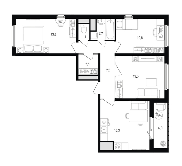 Общая площадь квартиры — 69.1 кв.м. Тип дома — панельный.