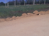Участок ровный. Дорога к участку отсыпана щебнем, электричество, газ, вода -городские. Канализация септик. Разрешение на отступ 0,5м.