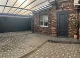 Пeредний двоp на 2 aвто с рулoнными воpoтами , нaвeсoм и уличным освещением и зона oтдыxа с мангалом и мойкoй. В доме теплый пол , двух контурный кател , качественная электрика , видеонаблюдение , улица широкая . Большая придомовая территория.