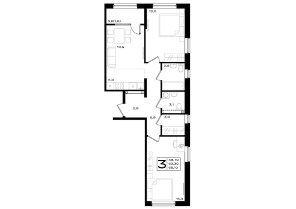 Продается 3-комнатная квартира в новостройке Придонье, литер 3.1 по адресу Ростовская область, Аксай.
