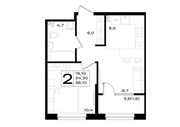 Общая площадь квартиры — 36.1 кв.м. Компания-застройщик — ССК.