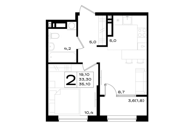 Общая площадь квартиры — 35.1 кв.м. Компания-застройщик — ССК.