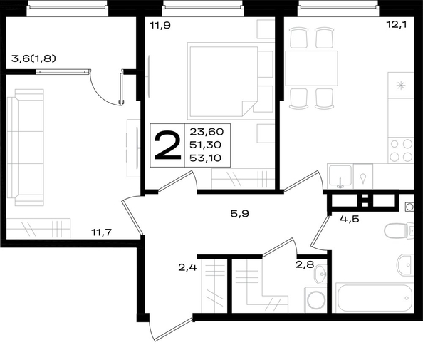 Общая площадь квартиры — 53.1 кв.м. Компания-застройщик — ССК.