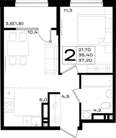 Общая площадь квартиры — 37.2 кв.м. Компания-застройщик — ССК.