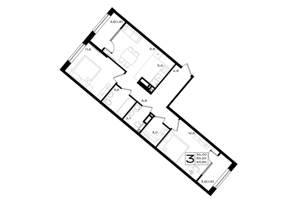 Общая площадь квартиры — 63.8 кв.м. Тип дома — монолит-блок. Компания-застройщик — ССК.
