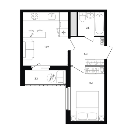 Общая площадь квартиры — 34.7 кв.м. Тип дома — панельный.