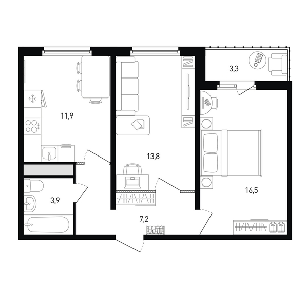 Общая площадь квартиры — 55 кв.м. Тип дома — панельный.