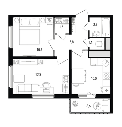 Общая площадь квартиры — 46 кв.м. Тип дома — панельный.