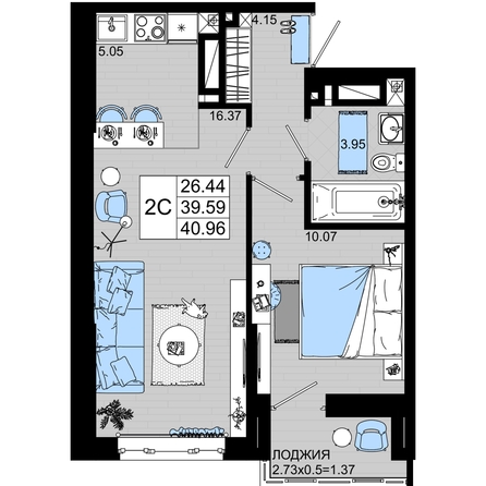 Общая площадь квартиры — 40.96 кв.м. Тип дома — монолит-кирпич. Компания-застройщик — ССК.