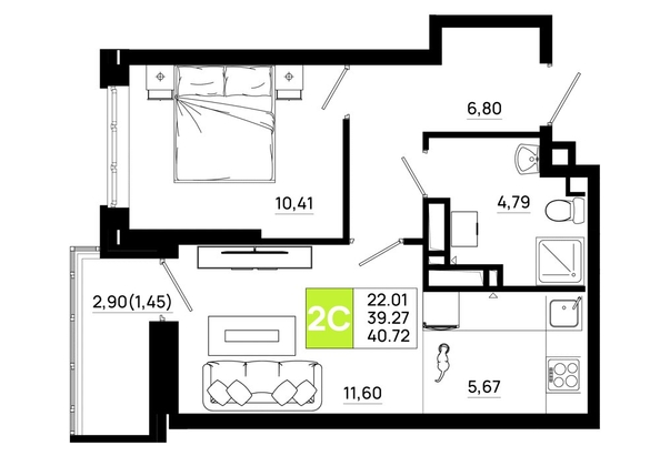 Общая площадь квартиры — 40.72 кв.м. Тип дома — монолит-кирпич. Компания-застройщик — ССК.