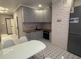 Ремонт выполнен из качественных материалов в приятных светлых тонах, все новое , без износа. В ванной теплый пол. Есть гардеробная и подсобная комната(где стоит стиральная машина), которую тоже можно использовать как гардеробную.