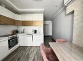 Квартира укомплектована всей мебелью по индивидуальному заказу и бытовой техникой: встроенный холодильник, посудомоечная машина, вытяжка,индукционная варочная плита, встроенные духовой шкаф ведущих производителей.