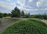Просторный участок в 20 соток утопает в зелени: сад с плодовыми и хвойными деревьями, декоративные кустарники, зелёные зоны для отдыха.