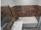 Санузел оборудован всей необходимой сантехникой, стены покрыты качественной плиткой, что облегчает уход и создает ощущение свежести и чистоты.