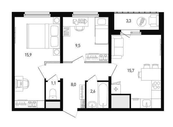Общая площадь квартиры — 54.5 кв.м. Тип дома — панельный.