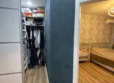 - В коридоре оборудована вместительная гардеробная, выполненная на заказ — удобное хранение без нагромождения пространства.