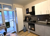 - Кухня полностью укомплектована техникой: холодильник, микроволновка, духовой шкаф, варочная панель, вытяжка и собственный котел — всегда горячая вода и индивидуальное отопление. На окнах кухни установлены жалюзи, которые защищают от яркого утреннего солнца.