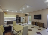 1-й этаж - кухня-столовая 40 м2. Сауна из липы ,бассейн 12 м/3 с комнатой отдыха. Инженерные сооружения для фильтрации и подогрева воды в бассейне. Зимний сад, сан. узел, современная котельная.