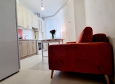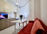 В квартире остается мебель и техника (кухня, холодильник, микроволновка, стиральная машинка, шкафы, спальные места).