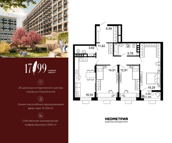 Квартал вдохновлен идеями великих и создан для великих. Образ хранителя ценностей — в каждой детали: имя и философия замедления, аристократичные фасады, лобби и холлы, семейные резиденции-истории и актуальное содержание. На приватной территории в 2,5 гектара четыре дома всего 10-этажей образуют масштабный двухуровневый двор-парк 10 000 м2 со smart-зонированием по возрастам и интересам. Среда квартала продумана для всей семьи: учебы и работы, спорта и отдыха, совместного досуга и теплых бесед. Гамак мечтателя, тайные места и маршруты, вертикальный сад пряных трав, амфитеатр и даже новогодняя ель.