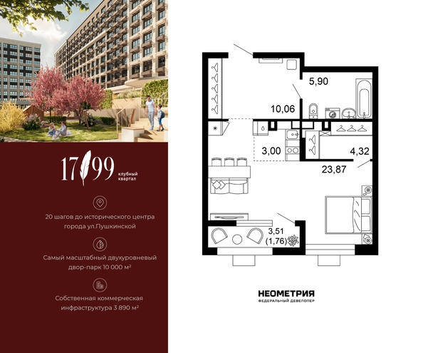 Продается квартира в клубном квартале «1799». Это истинный бизнес-класс в историческом центре Ростова. Особое сочетание уникальной локации и среды, где хочется создавать ту жизнь, которая подходит вам. Где каждое мгновение становится частью семейной коллекции лучших моментов.