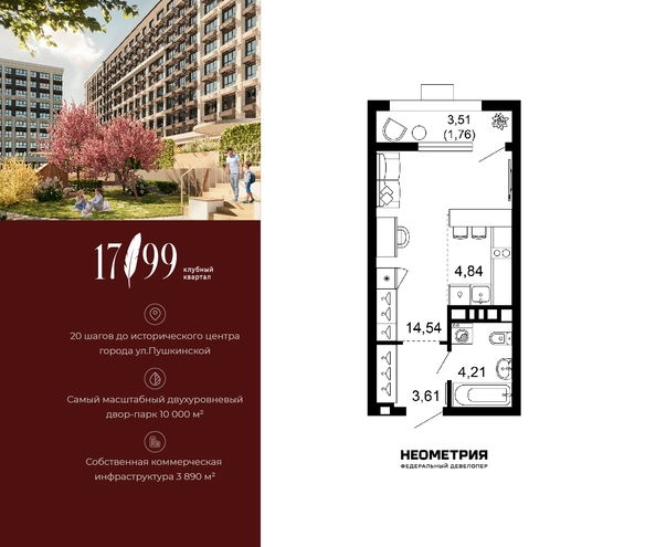 Продается квартира в клубном квартале «1799». Это истинный бизнес-класс в историческом центре Ростова. Особое сочетание уникальной локации и среды, где хочется создавать ту жизнь, которая подходит вам. Где каждое мгновение становится частью семейной коллекции лучших моментов.