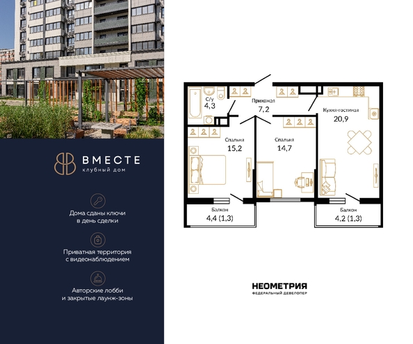 Вместе — премиальный клубный дом как продолжение личности. Синергия эстетики и функции, сервиса и создают особую среду для жизни.