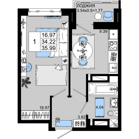 Общая площадь квартиры — 35.99 кв.м. Тип дома — монолит-кирпич. Компания-застройщик — ССК.