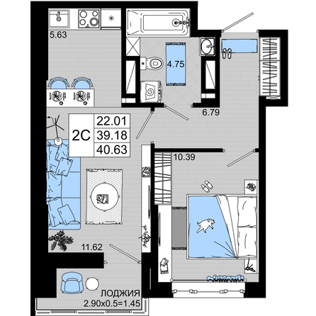 Общая площадь квартиры — 40.63 кв.м. Тип дома — монолит-кирпич. Компания-застройщик — ССК.