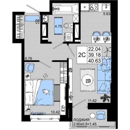 Общая площадь квартиры — 40.63 кв.м. Тип дома — монолит-кирпич. Компания-застройщик — ССК.