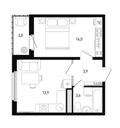 Общая площадь квартиры — 36.9 кв.м. Тип дома — панельный.