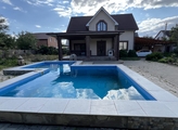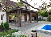 В продаже дом на 10 сотках с бассейном и отдельно стоящей баней на дровах.