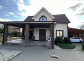 В основном доме на первом этаже расположена кухня с панорамным окном и выходом на террасу, просторная гостиная и сан узел. На втором этаже три спальни и сан узел. На полу ламинат, стены -обои , в сан узлах плитка. Дом очень теплый и хорошо отапливаемый. Так же отапливаемый гараж со своим сан узлом.