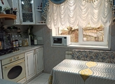 На полу в спальной комнате ламинат, в ванне и кухне теплый пол.