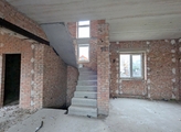 Продаю новый 2-х этажный кирпичный дом без отделки на участке 6 соток. Есть цокольный этаж с подвалом и мансарда с потолочными окнами. На первом этаже предусмотрен дымоход для камина. Во всем доме установлены окна "Rehau". Дом строился для себя. Стены толщиной в 2 кирпича. Газ и вода по меже, проплачены и оформлены. Электричество заведено.