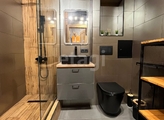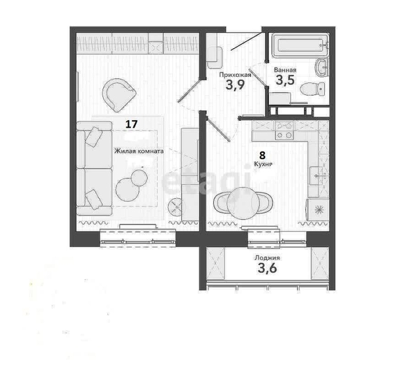 Объект реализуется в состоянии полной готовности к проживанию с дизайнерским ремонтом и качественной меблировкой, что исключает необходимость дополнительных вложений и позволяет заселиться сразу после сделки. Планировка отличается рациональностью: изолированная комната 17 м² обеспечивает приватность, а просторная кухня 8 м² грамотно объединена с холлом, формируя комфортное многофункциональное пространство. Отделка выполнена с применением современных материалов: на полу уложен итальянский керамогранит, в санузле установлена душевая кабина с гигиеническим душем, подвесной унитаз с инсталляцией и стильная мебель. Кухонный гарнитур с полноценным набором бытовой техники гармонично интегрирован в общую концепцию интерьера.