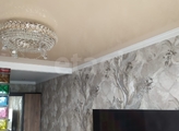 натяжные потолки, в комнатах уложен ламинат, в коридоре и ванной комнате - керамическая плитка.