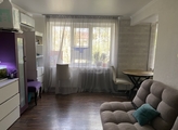 Кухня-гостиная и изолированная спальня. Балкон (застеклен) из спальни выходит в зеленый двор. Во дворе детская площадка.