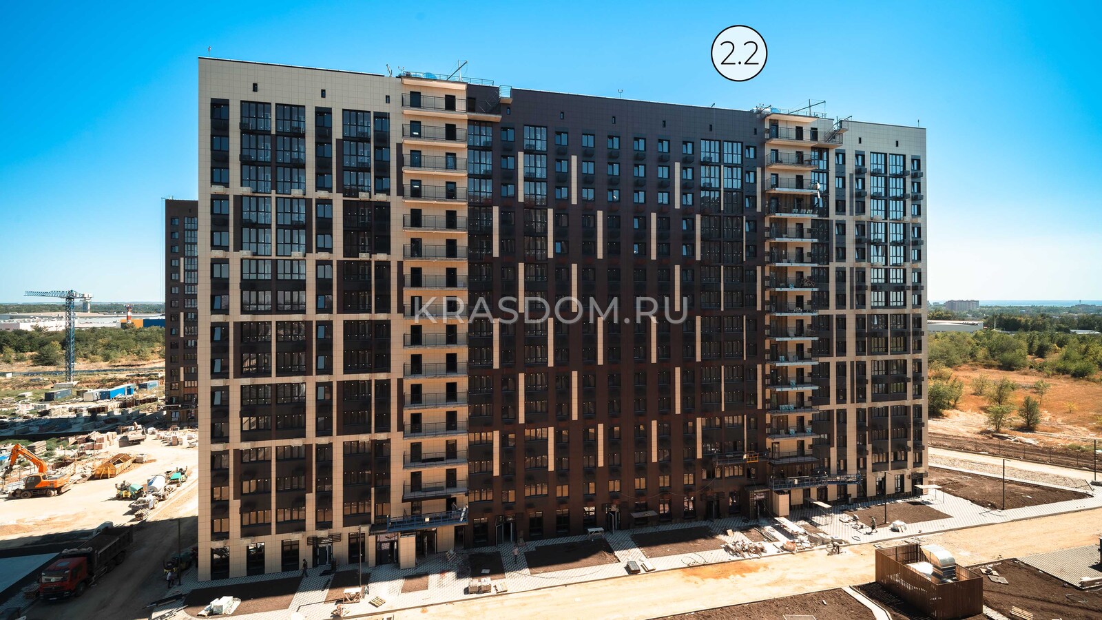 Литера 2.2 - двухподъездный 15-этажный дом на 364 квартиры площадью от 26 до 66 кв.м с кладовыми помещениями.