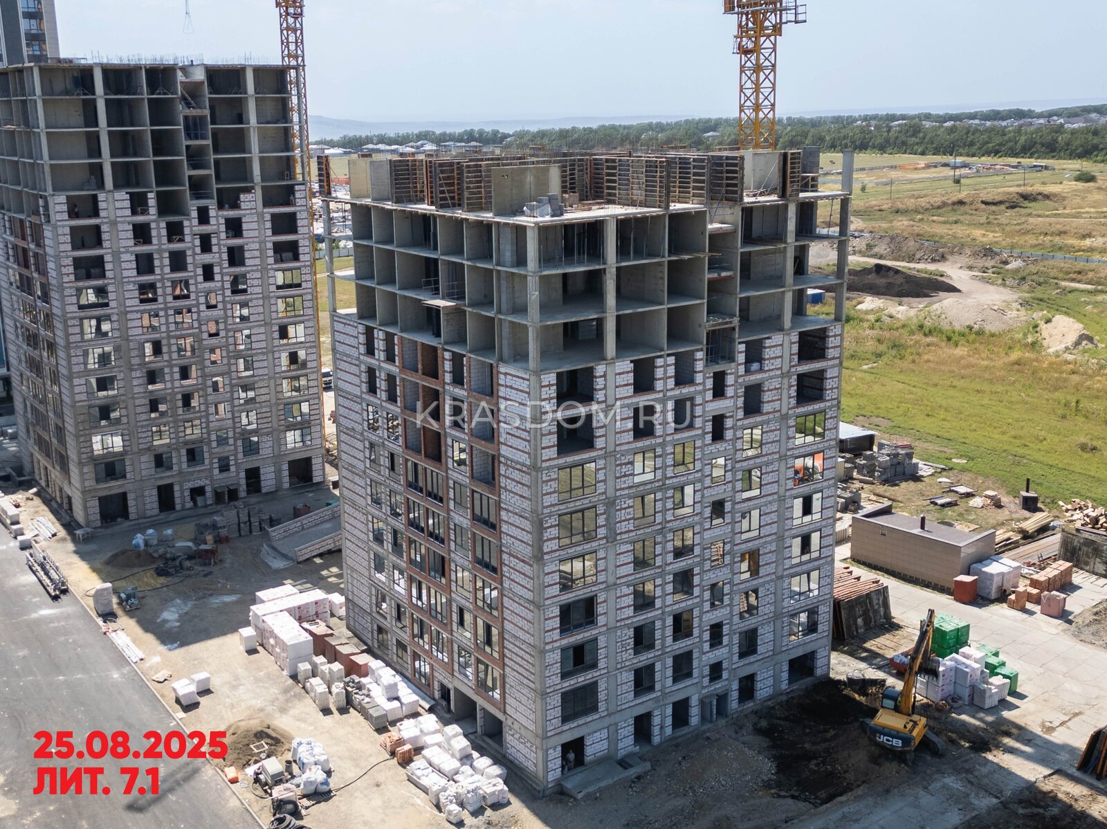 В монолитно-кирпичном доме литер 7.1 один подъезд. Всего в 16-этажной новостройке 138 квартир площадью от 43 до 90 кв.м. В цоколе и на жилых этажах расположены кладовые.