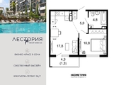 Продается квартира в жилом комплексе бизнес-класса «Лестория». В составе ЖК предусмотрена собственная аквазона площадью 473 квадратных метра с двумя подогреваемыми бассейнами, что соответствуют стандартам бизнес-класса.