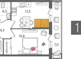 В продаже 1-комнатная квартира от застройщика! ЖК «Рекорд» 2 очередь, г. Краснодар, Литер 4 Срок сдачи: 2 кв. 2026, общей площадью 45.6 кв.м., на 2 этаже.