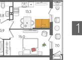 В продаже 1-комнатная квартира от застройщика! ЖК «Рекорд» 2 очередь, г. Краснодар, Литер 4 Срок сдачи: 2 кв. 2026, общей площадью 45 кв.м., на 13 этаже.