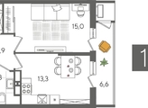В продаже 1-комнатная квартира от застройщика! ЖК «Рекорд» 2 очередь, г. Краснодар, Литер 4 Срок сдачи: 2 кв. 2026, общей площадью 44.6 кв.м., на 24 этаже.