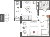 В продаже 1-комнатная квартира от застройщика! ЖК «Рекорд» 2 очередь, г. Краснодар, Литер 5 Срок сдачи: 2 кв. 2026, общей площадью 41.3 кв.м., на 21 этаже.